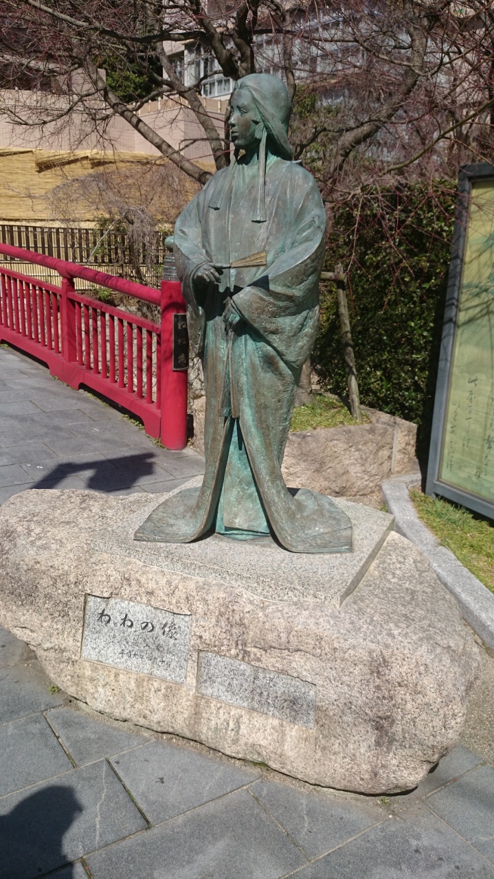 そのねね橋の側に秀吉の正妻であったねね像があり、多くの観光客がこの有馬温泉ねね像と記念撮影をしています。