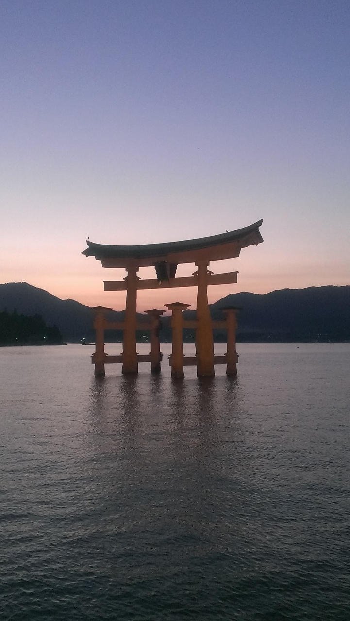 鳥居は干潮時はくぐり抜けることが出来、その大きさ、荘厳さを間近で見ることが出来ます。