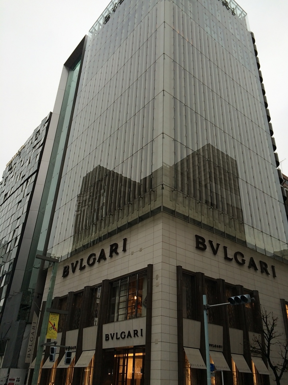 デパートやハイブランドが立ち並ぶ中央通りにあるブルガリの旗艦店です。
