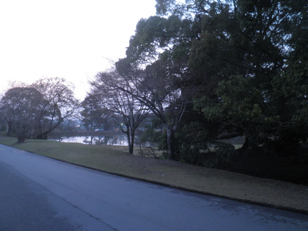 東大寺の二月堂で景色を眺めて、そろそろ日が暮れそうなので、東大寺の境内を散策しながら近鉄奈良駅のほうへ徒歩で向かいました。 南大門のほうに比べて、大仏池のほうはあまり人影が見当たらなくて静かな感じでした。 周辺には樹木が茂り、日暮れの景色を楽しむにはいいところでした。