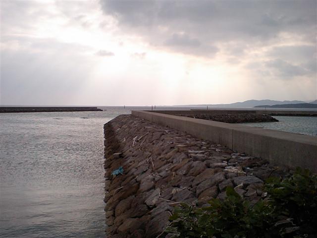 細崎の入り口に西表島を望めるビーチがあり、その先には海人公園や漁港があります。