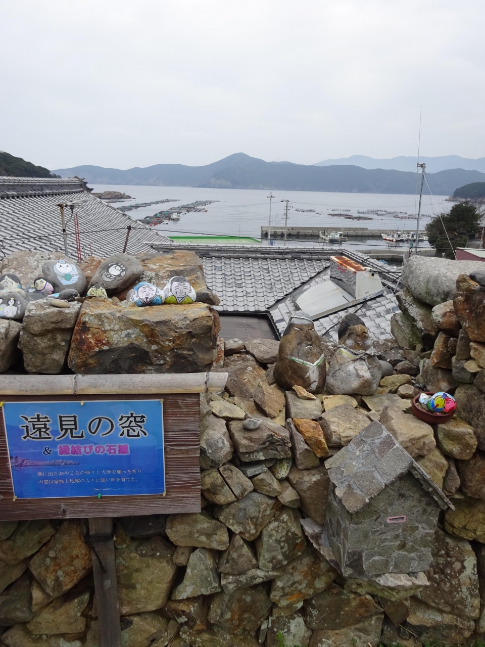 - 休憩者に張り付く石垣集落と宇和海の風景がなんともいい。