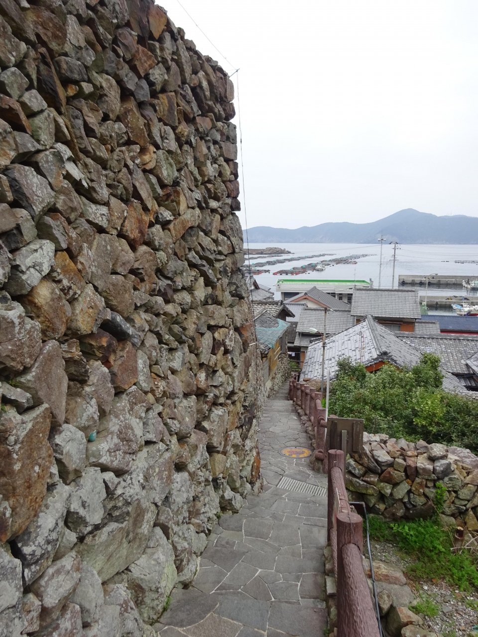 入江に向かって広がる急斜面に立派な石垣の集落が張り付いて密集しています。地元の人も普通に使う遊歩道が整備されていて、眼下に連なる石垣と宇和海がなんともいいです。