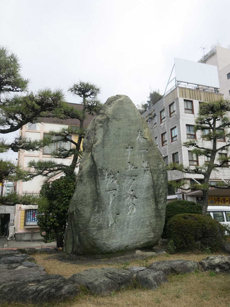 松山駅の改札を出て、駅前のロータリーを左に進んだ場所にあります。市電のりばへ向かう途中にあるので、多くの人が足を止めていました。坂の上の雲にも登場する正岡子規が詠んだ句で、城下町の風景に文豪が華を添えています。