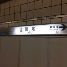 この駅から、あの有名な築地に行く事ができます。多くの観光客で駅のホームはごったがえしていますが、明るく判り易い駅になっています。