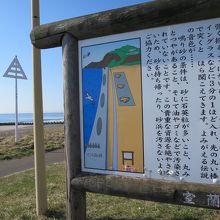 砂が鳴るのは海岸の西側、潮見公園やユースホステルのある方で、浜に沿って伸びるイタンキ海水浴場通りの突き当たり角に案内板があります。それによると、浜にテトラポットが伸びていますが、その先の西側の砂浜の乾燥した部分で音がするというのですが、果たして普通の砂の音にも聞こえ、よく分かりませんでした。もっと乾燥した時期がよいのでしょうか? すり鉢などに入れ、木の棒でつついても音がするとのことです。南部藩陣屋跡のある陣屋町の室蘭市民俗資料館に鳴り砂の体験コーナーがあったのですが、縦につくと聞こえているような聞こえてないような… 普通の砂と比べてみないと分からないかもしれません。
