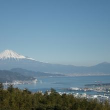 駐車場から上がってすぐ、左側にある展望台からの眺めです。晴れた日は、富士山がよく見えます。