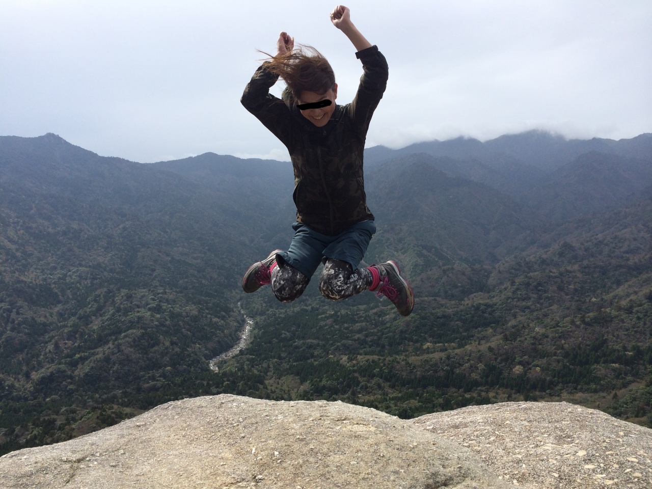 岩の上はかなりの強風なので飛ばされやすいもの(帽子等)気を付けてください。