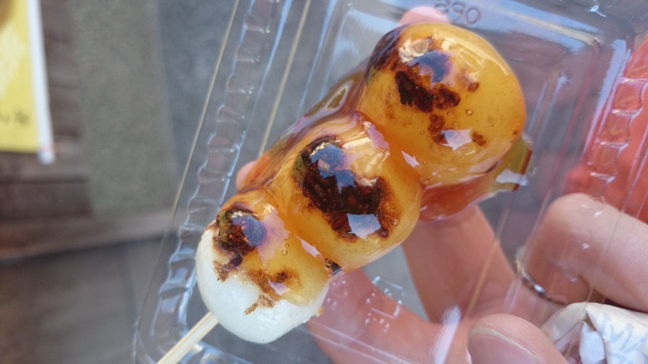 焼けた団子をみたらしのあんにつけて渡してくれるので、熱々で団子の表面はパリッと香ばしく、中はしっとりしていて、美味しいみたらし団子でした。