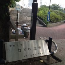 ニチレイ東銀座レジデンスと住友生命ビルの間に位置する公園で、階段が隅田川テラスと繋がっています。