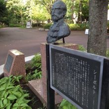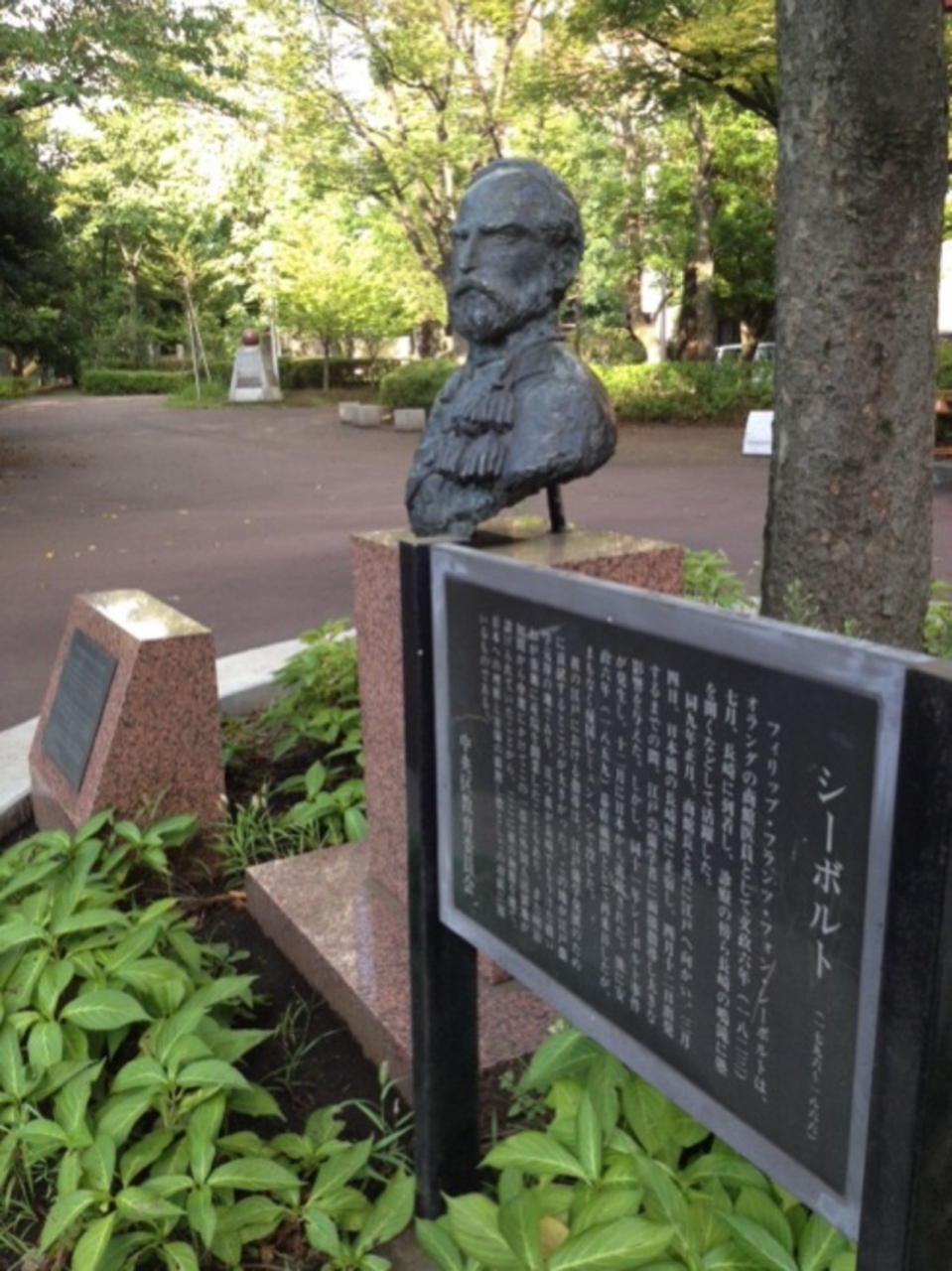 聖路加病院近くのあかつき公園内にあり、シーボルトは江戸蘭学発展のために貢献したため、この地が江戸蘭学発祥の地であり、さらに彼が長崎でもうけた娘いねが築地に産院を開業したこともあり、また明治初期から中期にかけてこの一帯に外国人居留地が設けられていたことから、ここに胸像を建てられたようです。