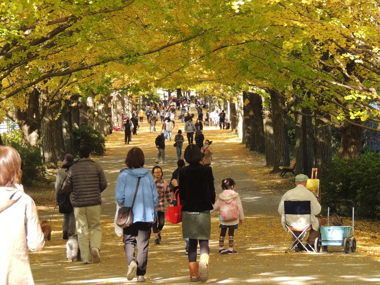 中央線立川駅から歩くか青梅線西立川駅から歩くかで入場するが、今回は立川側の入り口から両側に続く銀杏並木を見てから、日本庭園へ進んだ。自転車のレンタルがあるが、サイクリング用の道では、よい撮影スポットはほとんどない。よい写真を撮るなら絶対歩きです。