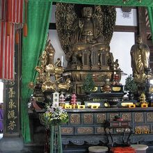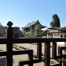 境内には、三門を始め、天王殿、「大雄寶殿」(本堂)、法堂(はっとう)、斎堂(さいどう)などがあます。法堂の前面にある「卍くずし」の勾欄が中国風を醸し出し、斎堂の前には日本の木魚の原型となる魚の形をした開パン(かいぱん)があります。