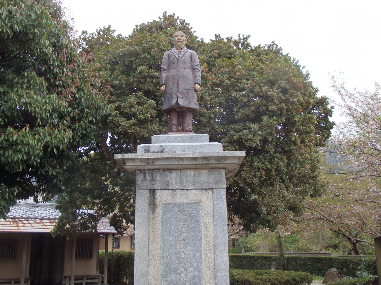 旧宅そばには、萩焼でつくられた伊藤博文の銅像が建っています。