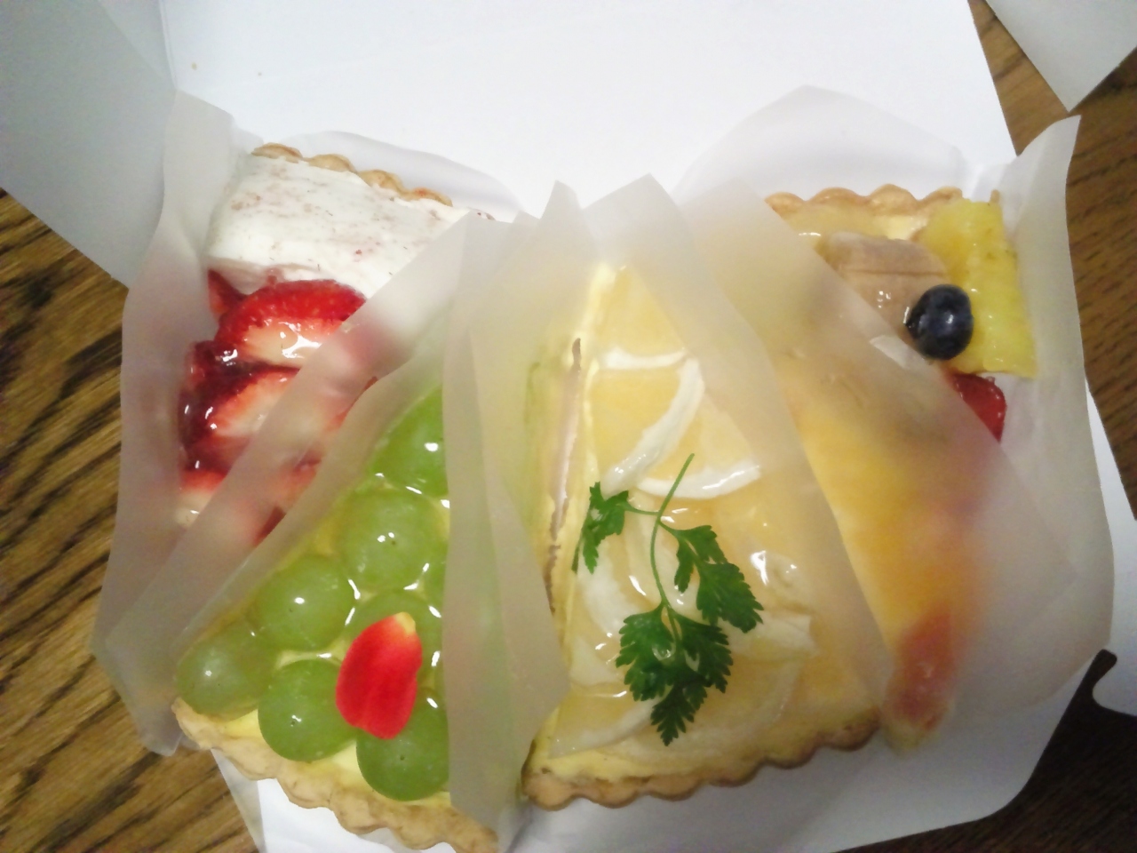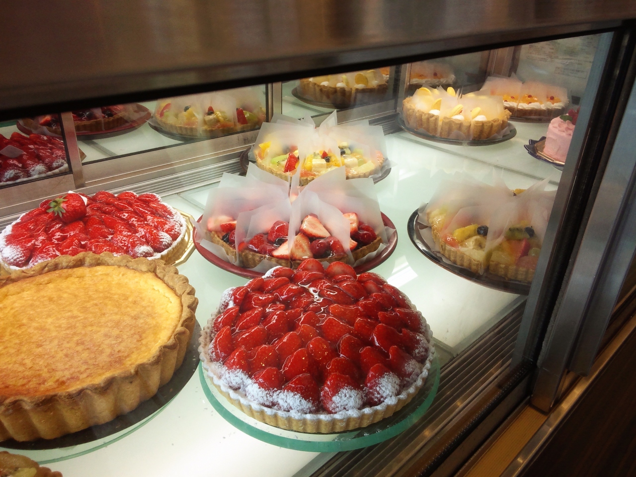 店内は輝くタルト達。どれも美味しそうで迷いましたが、フルーツタルト、トンプソンタルト、苺とホワイトチョコのタルト、日向夏のタルトを購入。