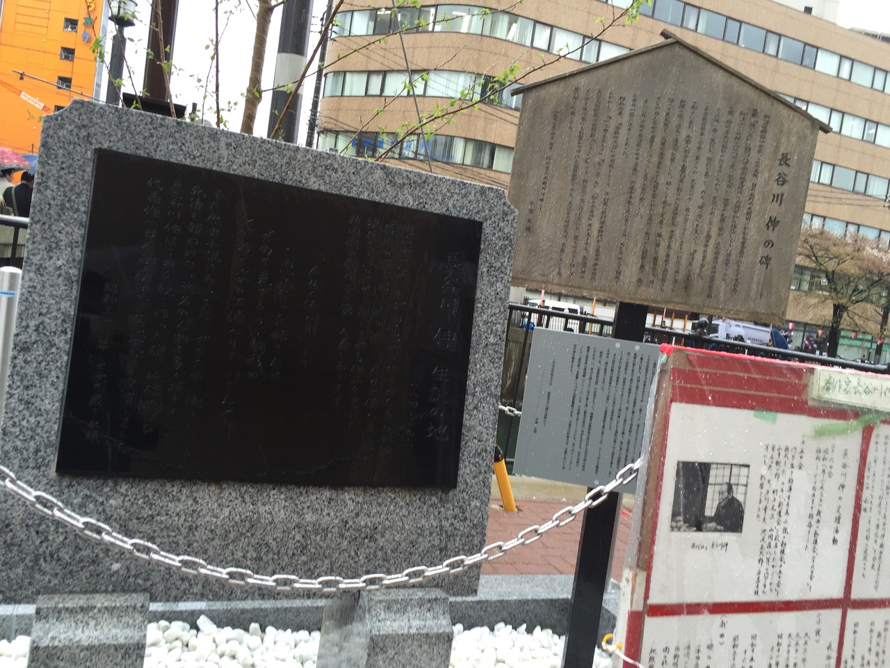京浜急行線の日ノ出町駅をおりて、大岡川に向かうと、橋のほとりに碑が建っています。長谷川伸は、瞼の母などの作品で有名な作家で、劇作家でもあります。子供の頃、小学3年生で学校を中退して、独学で字を勉強し、新聞記者になったそうです。