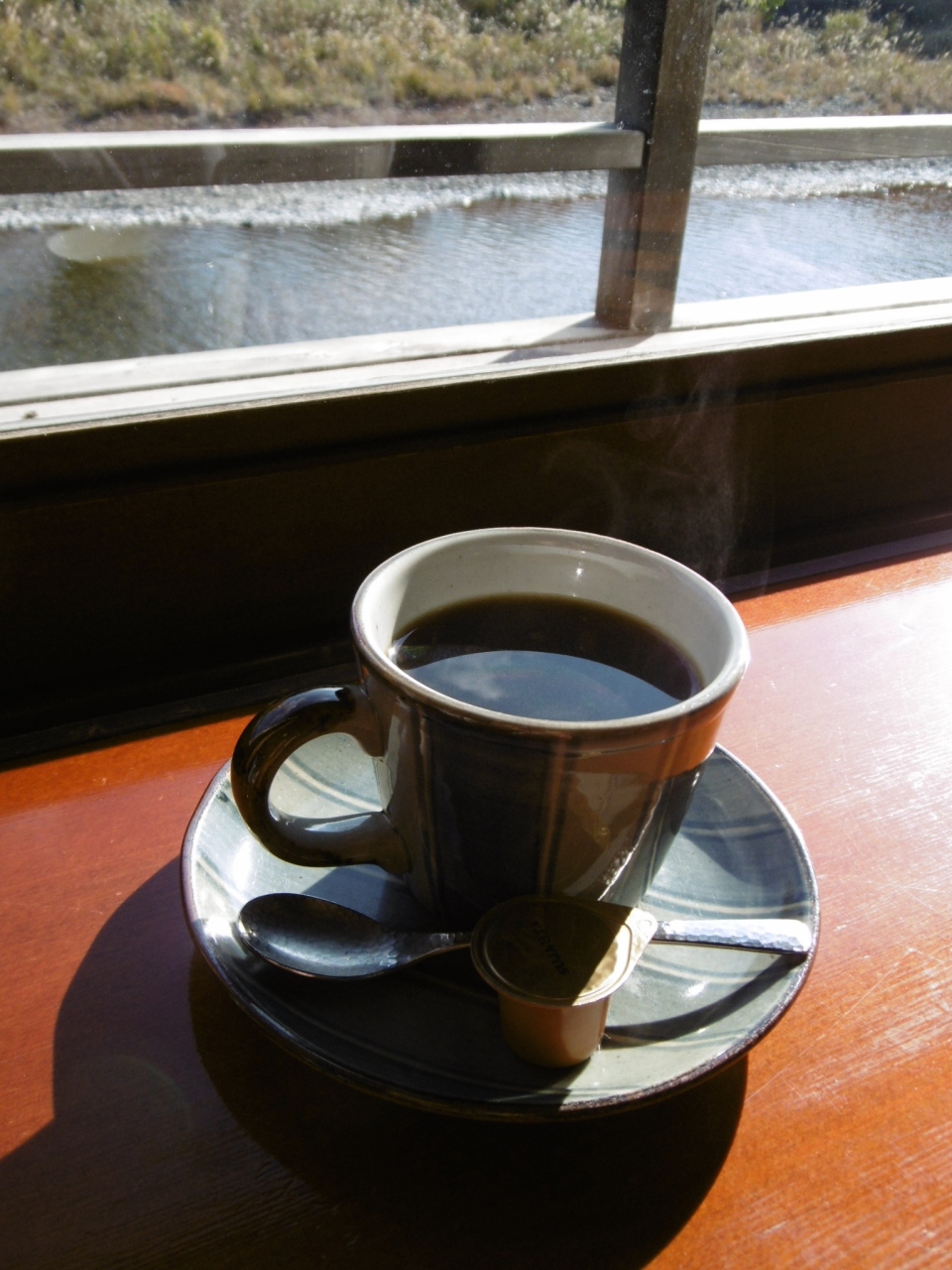 おはらい町通り沿いにあって、五十鈴川を眺められるカウンター席で、のんびりコーヒーをいただきました。