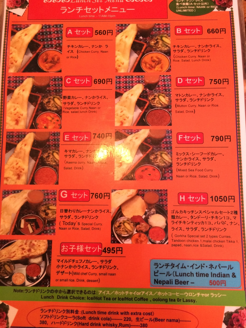 ランチでは数種類のセットがあり、ドリンク・サラダ・ナンまたはライス付き。