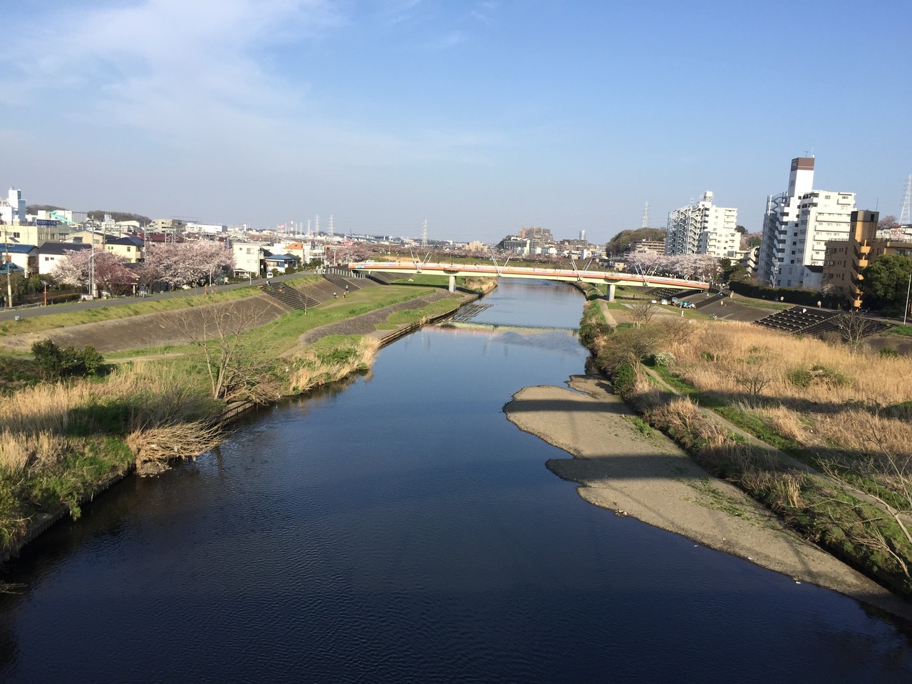 神奈川県の相模原市、川崎市、横浜市、さらには東京都町田市などを通る一級河川です。従って、管理も市の管理区間、県の区間、国の直轄管理区間と、複雑に分かれています。横浜Fマリノスの本拠地である日産スタジアムは、鶴見川の氾濫に備えた遊水池としての機能も備えています。