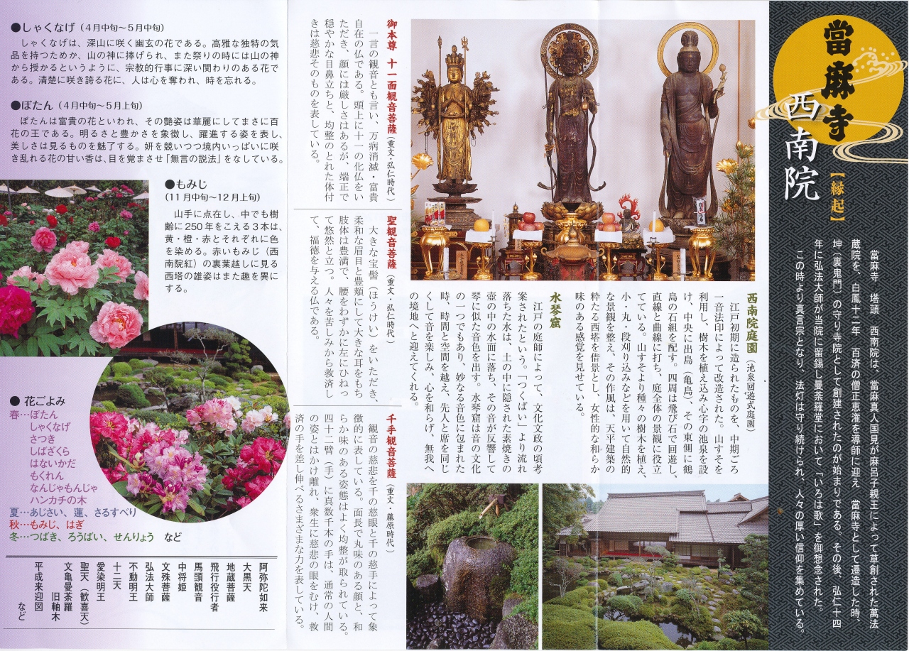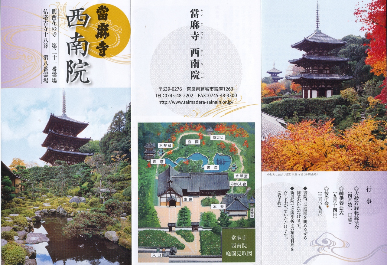 なぜかレストランに入っているがここではお寺を紹介.西南院の庭園と水琴窟もすばらしい.音色が美しい.また池に写る三重塔西塔を借景にする池のつくりも見事.東西両塔とも良く見える.みはらし台からは,當麻の里,奈良盆地が見える.300円払っても入ったほうがいい