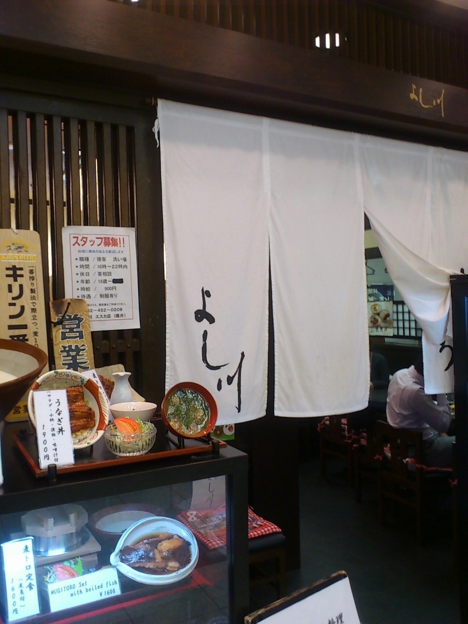 名古屋駅の新幹線側の地下街のエスカにあるお店です。麦とろの専門店で、麦飯にとろろに何かのおかずがセットになったものが各種あります。生姜焼きと麦とろのセットを注文。麦めしは、お釜に入った状態で出て来ます。これを茶碗によそって、とろろを自分の好みで掛けます。専門店だけあって、とろろは美味しいです。