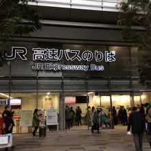 東京駅を出発するJR高速バスは全て八重洲南口乗り場から発車しているので、昼行便、夜行便の利用客でこのターミナルは人がいっぱいです。待合スペースやコインロッカー、売店もあるので雨や寒い日でも快適に発車までの時間を過ごせるのがいいですね。