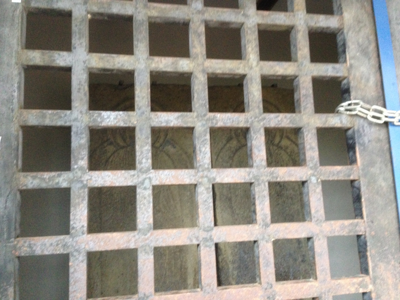 小さいですが立派な祠が建てられてある中に設置してあり格子ごしにしか