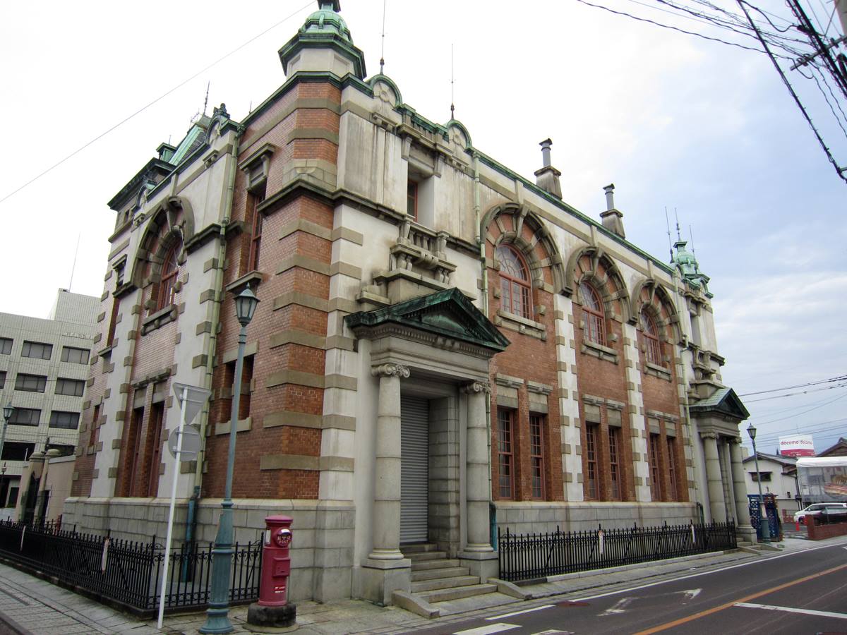 唐津駅から唐津城へ向かう途中にある旧唐津銀行。佐賀県遺産に指定されている建物で、東京駅を設計した人物としても知られる唐津出身の建築家辰野金吾が設計した建物です。