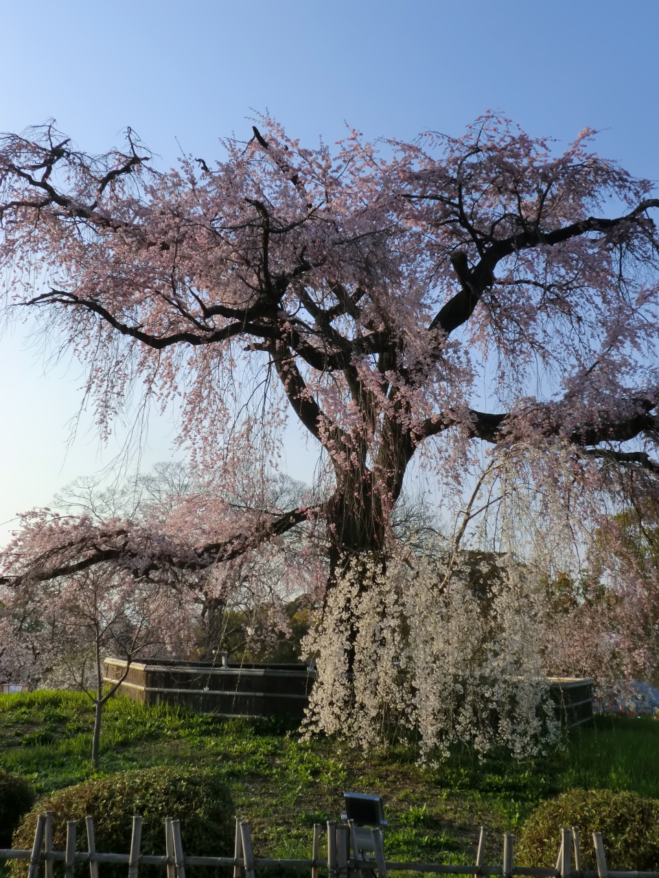 夕刻だったので、かなり疲れて円山公園に到着しました。哲学の道を歩き、2年坂、3年坂をから円山公園です。しだれ桜がほぼ満開でした。公園内には露店もあり、食べ歩きができます。花見をするスペースが確保されており、京都市民の憩いの場所だと思います。外国人観光客も大勢で、夕刻なのに、とにかく人が多かったです。