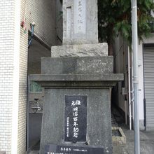 - 建物の間に碑と説明板があるのみ。