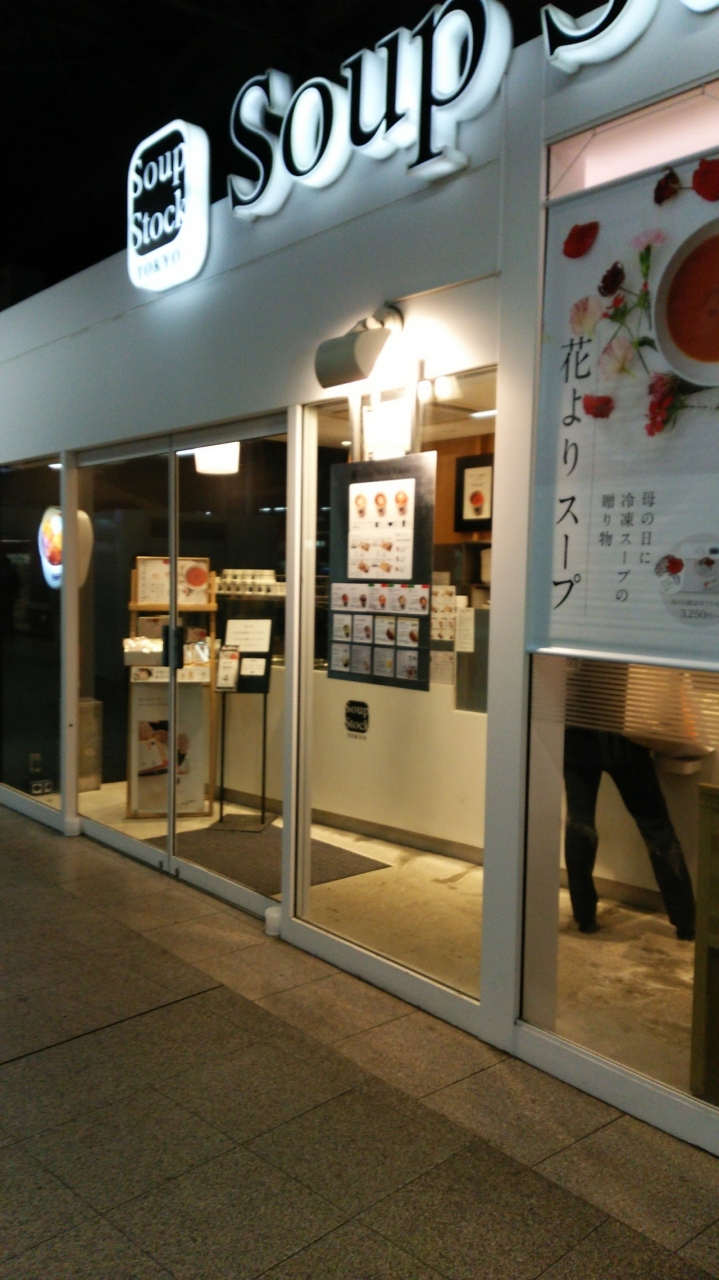 京急品川駅の泉岳寺方面のホームにあるスープ・ストック・トーキョーです。ホーム上にある店舗なので、店内は狭いですが、移動途中に立ち寄ることも出来るので便利です。ここのスープはどれも美味しいですし、女性客がひとりでも入りやすい感じの店舗です。