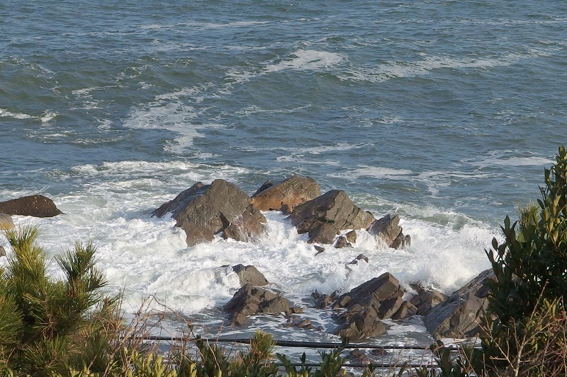 干潮時は岩場広くなり、海水の残った汐溜の岩場では、