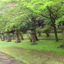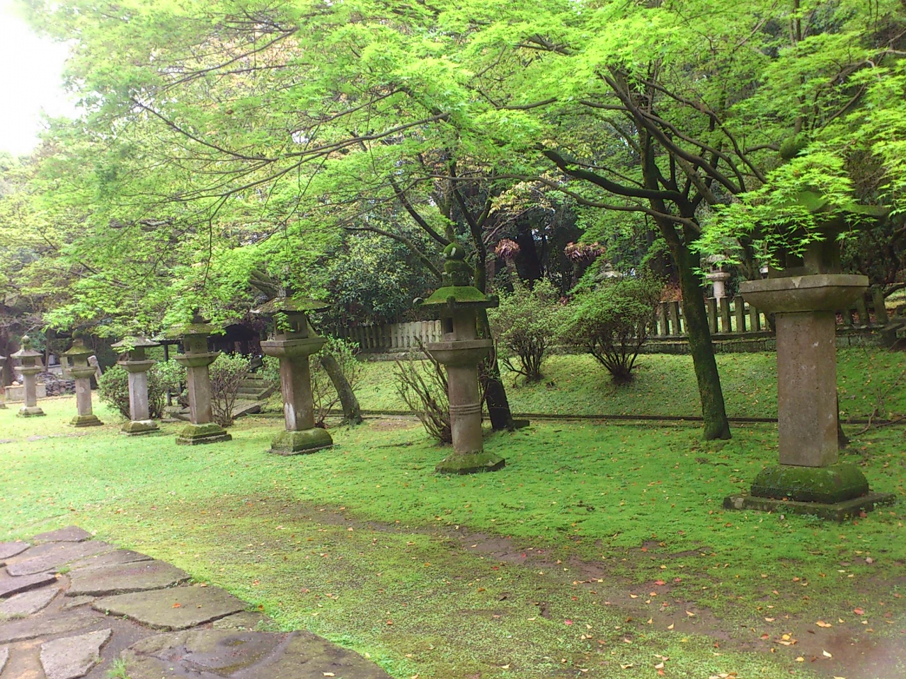熊本駅から歩いて10分ぐらいですが、道路は歩道がなく、行き交う車で危険です。自然公園という名前ですが、もともとは細川家の菩提寺妙解寺跡なのでお墓があります。墓地へ登っていく階段は、緑色の苔で覆われていて、足が滑るので注意が必要です。紅葉で有名な場所だそうですが、紅葉の季節ではありませんでしたが、確かに木々は綺麗でした。