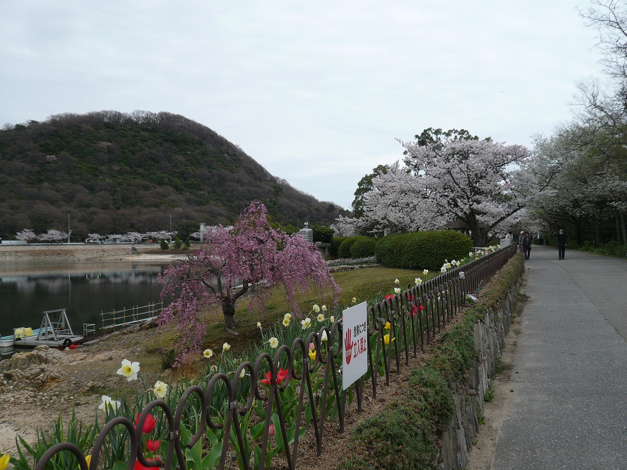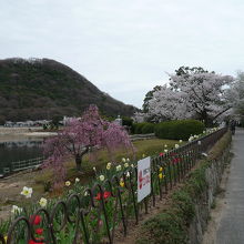しだれ桜や いろいろな桜が見れて本当に 素敵な景色です。多くの人がお弁当を 持って来て、楽しんでいます。
