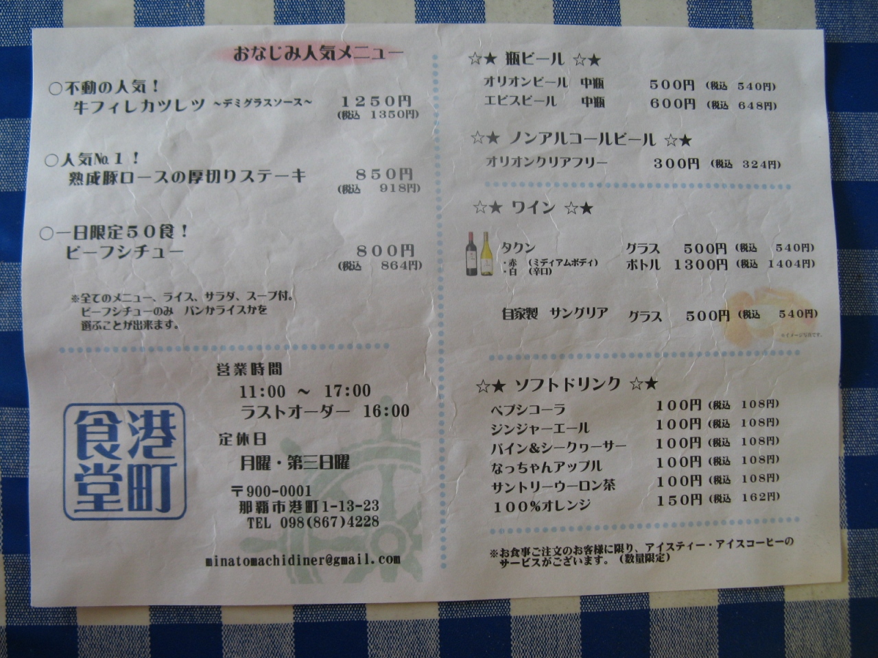 来年、また、沖縄に行ったら再訪するつもりです。なお、昨年と比べて一品50円ほど値上がりしているものもあるので、参考までにメニューの写真を添付します。
