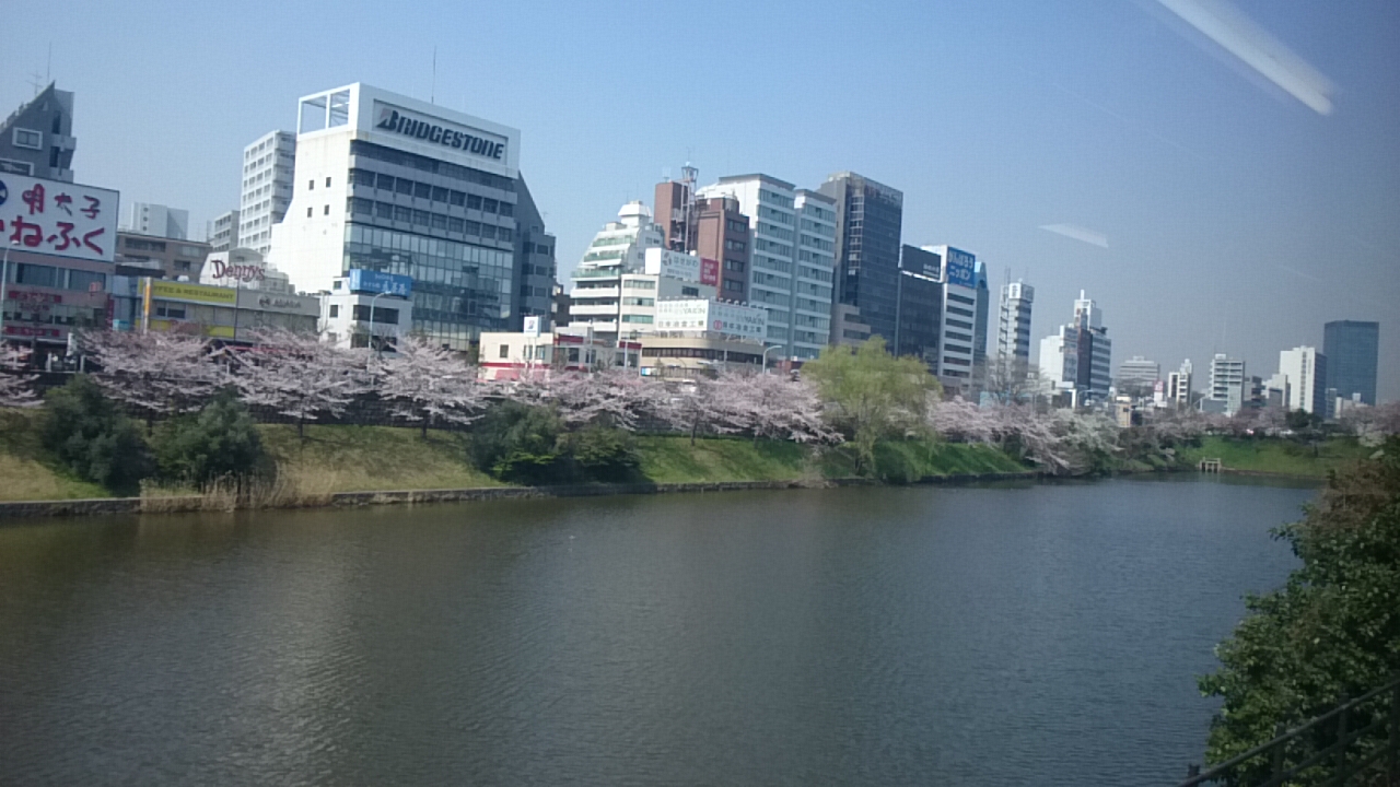 JR飯田橋駅からJR市ヶ谷駅、JR四ツ谷駅まで外濠に沿って続いています。3月末に行きましたが、特に市ヶ谷駅から飯田橋駅にかけて外濠越しに眺める満開の桜がとてもきれいでした。この桜は、総武線、中央線の車内からも眺めることができます。