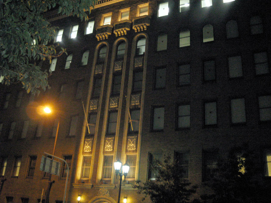 1926(大正15)年、大手ゼネコン「大林組」の本社社屋として建てられた、大型の近代建築です。正面にある長い三連アーチが特徴。全体に茶色のスクラッチタイルが貼られた、どっしりとした重厚な外観です。一時期取り壊して建て替える案もありましたが、幸いなことに現在もテナントビルとして現役です。一時は料理学校として使われ、今はフランス料理店となっています。3階には大林組の史料館があります。