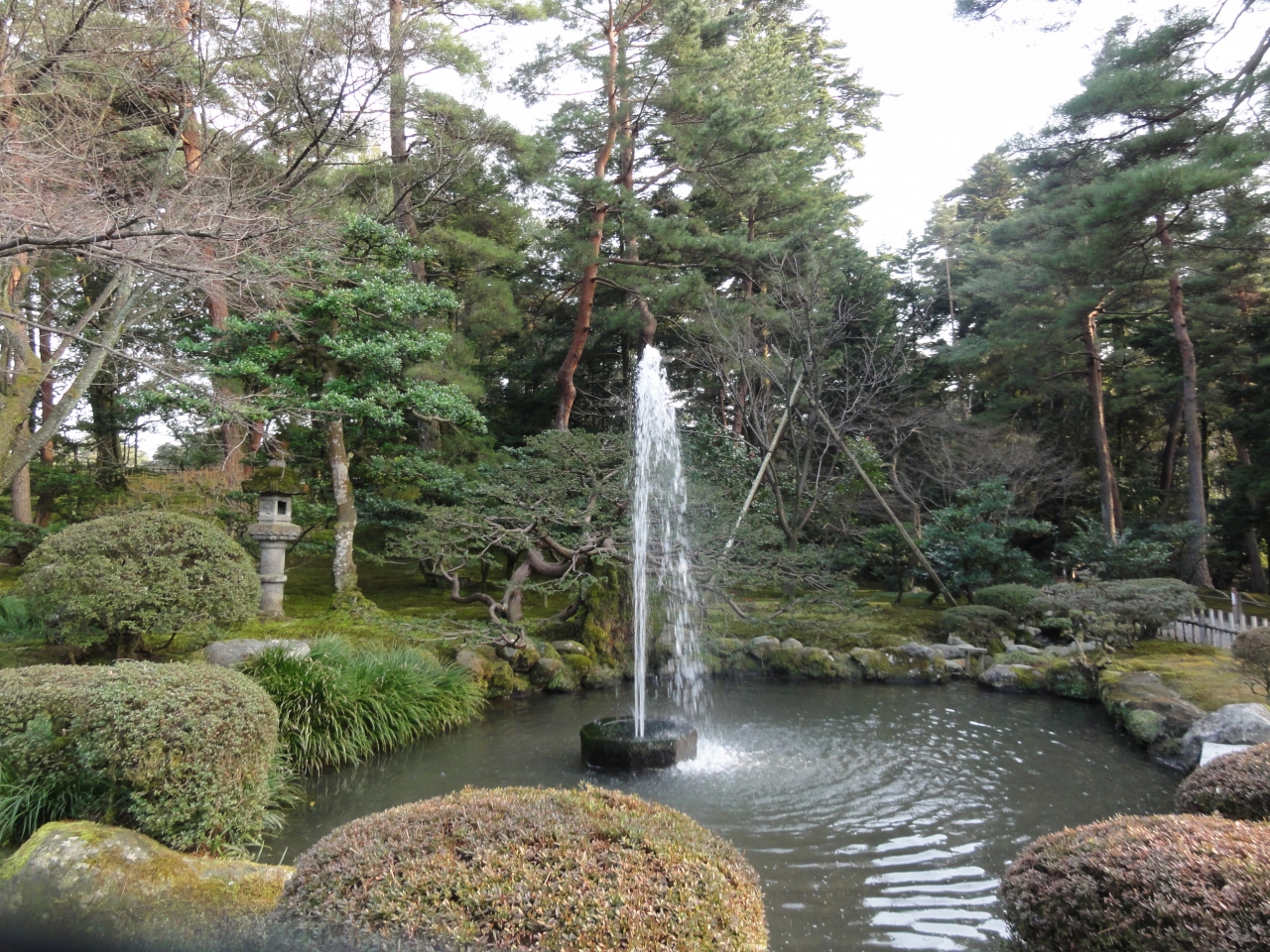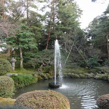 霞ヶ池から水を引いて作られた日本で最初の噴水です。地形の高低差を利用して、自然の力で噴き上げられていて、噴き上げる高さは降水量や雪にも左右されるそうです。当時は画期的な発想だったでしょうね。夕方だったので混雑もなくゆっくり見られました。