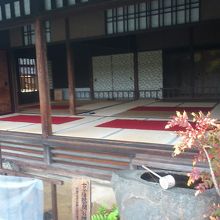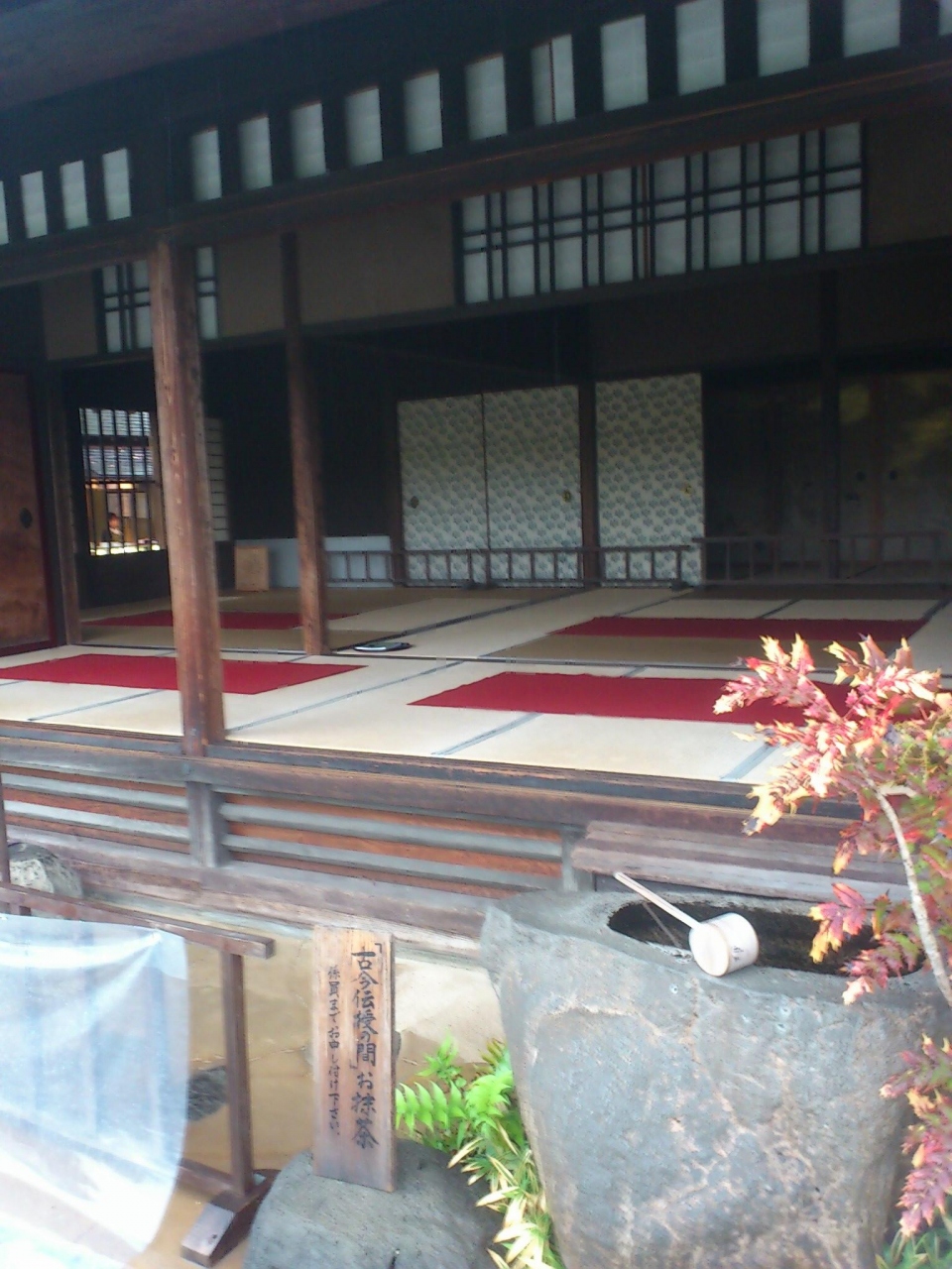 水前寺公園の入口から入ってすぐのところにあるお茶室のような感じの日本式の建物です。もともとは京都にあったものですが、大正時代にこの地に移されたようせす。細川幽斎が後陽成天皇の弟に古今和歌集の奥義の伝授使った建物です。畳の上に赤い毛氈が敷かれています。