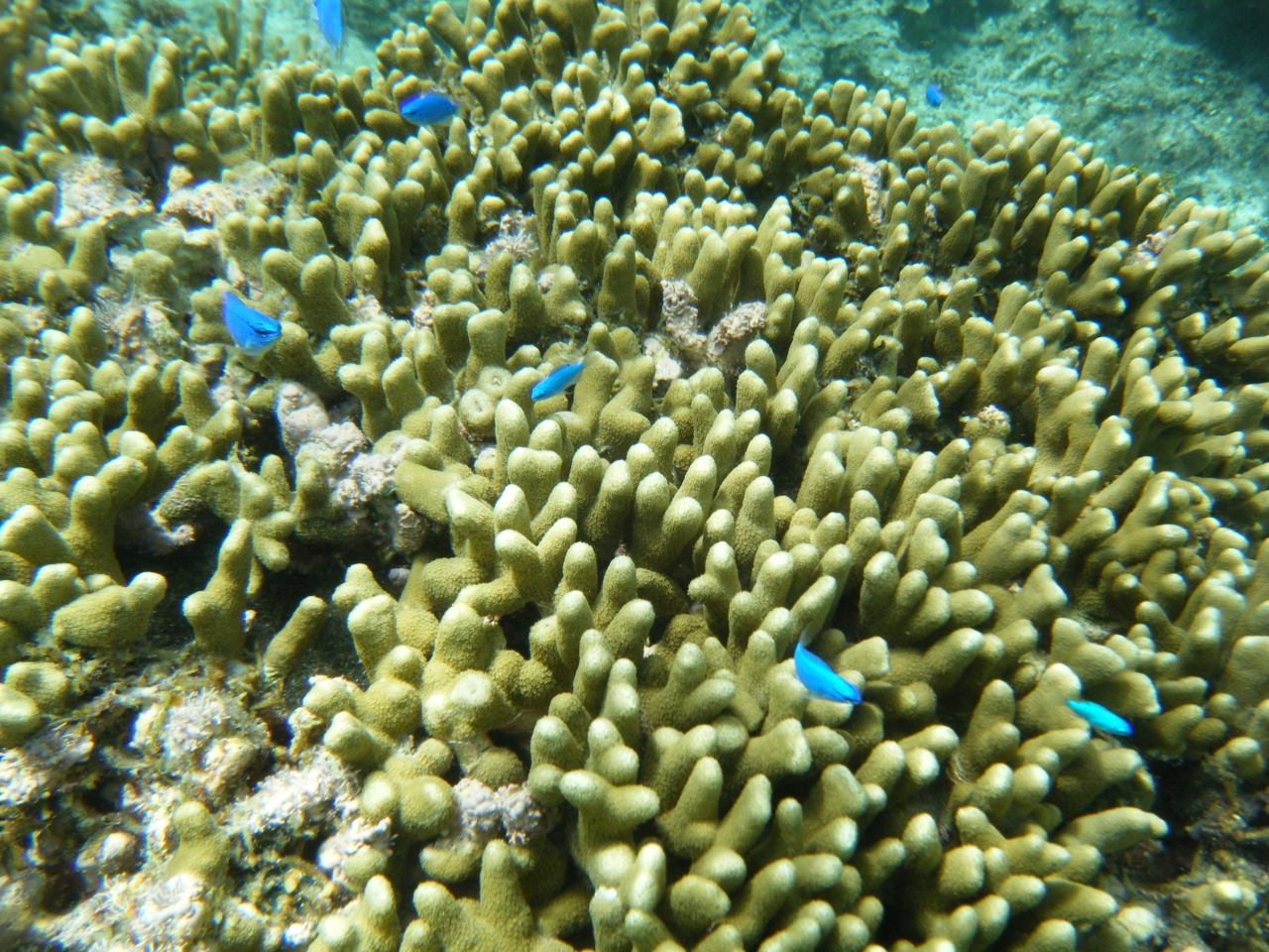 珊瑚というより、岩のようなものが多いですが、魚がたくさんいます。