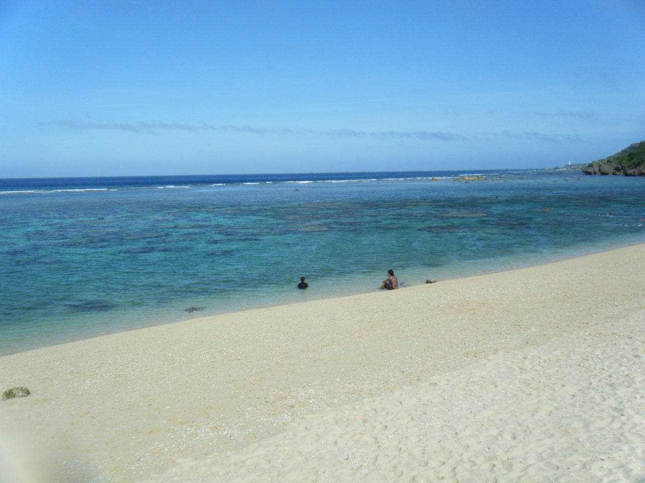 見た感じは普通のビーチ。(そりゃ、与那覇前浜などのほうが絶対きれいだなぁと思いましたね・・・)恐る恐ると海へと入りましたが、透明度の高さに驚きました。