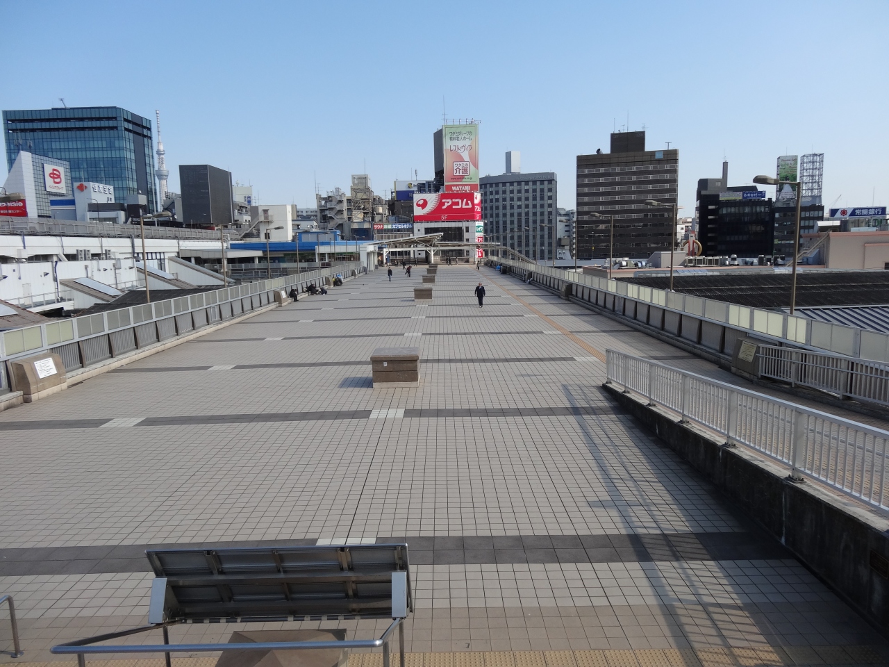 2000年に完成した、中央口と公園口を結ぶ幅の広い連絡橋です。公園口の方に、パンダ橋と書かれた花崗岩の碑があります。こちらの石は白と黒のコントラストがきれいで、まさにパンダだな!という感じで面白いです。この橋から上野の商業エリアを見下ろすと、上野の雑踏が見えてなかなかのビューポイントでもあります。