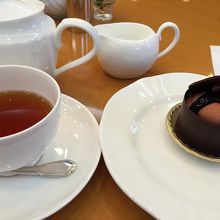 紅茶とカプチーノのケーキを頂きましたが、紅茶のミルクが温められていて嬉しく思いました。ケーキは濃厚なチョコにコーヒーのムース、とても美味しく1つで充分満足できます。