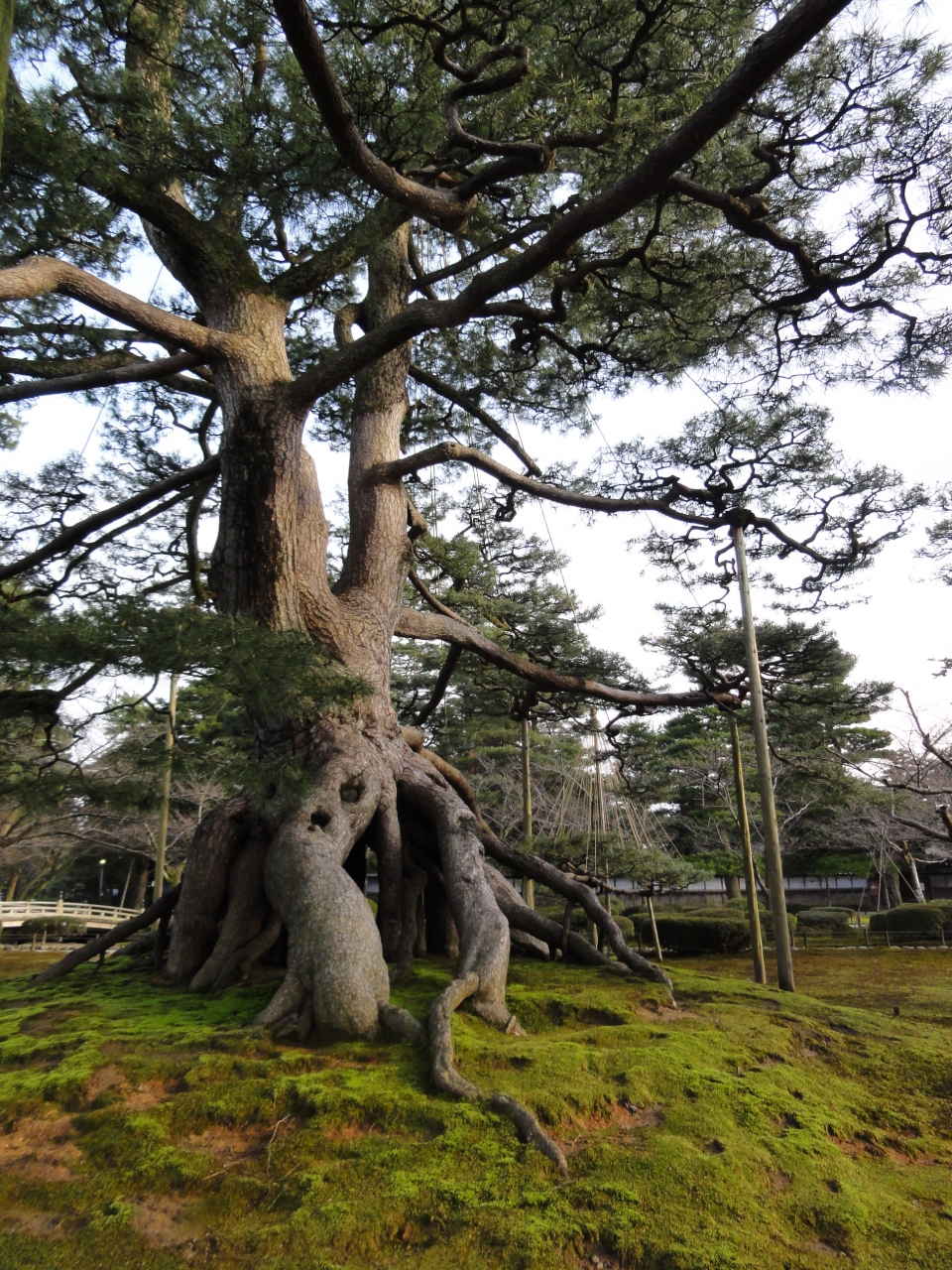 意図的に土を盛って植え、根も鑑賞出来るようにした松の木です。根上松(ねあがり)と読むらしいのですが、その姿を見て根性ある!こんなにされても生きてる!別名は「根性松」でも良さそうです。ディズニー漫画なら伸びた枝を震いながら、歩き出しそうだなと思いました。