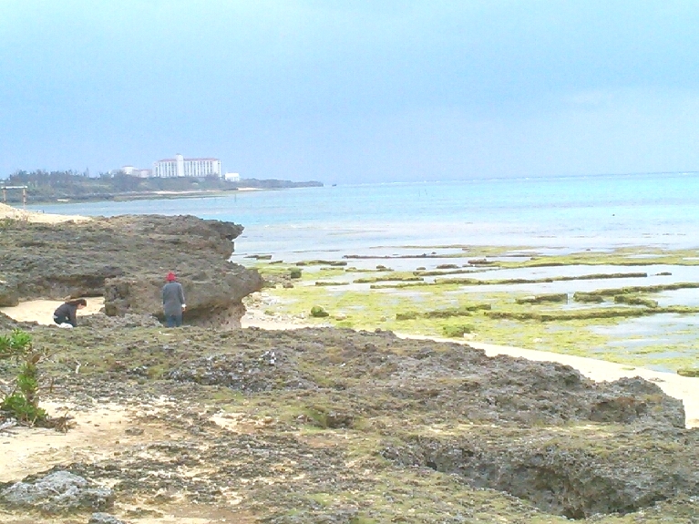10年振りに訪れてみました。周辺の景色はほとんど変化なく、絶景は変わらず。ただ風の強さも相変わらずでした。10年前と比べると、ビーチ周辺が少し整備されたのか、岩場の海辺にも降りて行きやすくなったように感じます。ロイヤルホテルの駐車場入口に巨大シーサーが出来ていました。