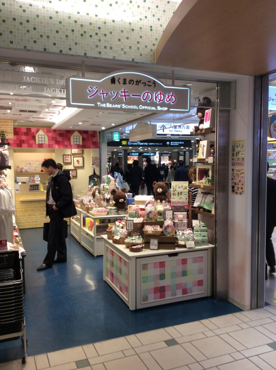 東京駅一番街の東京キャラクターストリートにあります。東京大丸を出てすぐの所です。累計発行部数200万部を誇る人気絵本シリーズ「くまのがっこう」の世界初のオフィシャルショップです。レイルウェイジャッキーのぬいぐるみをはじめ、バッグ、キッチン雑貨、文具など、かわいい雑貨が揃っています。