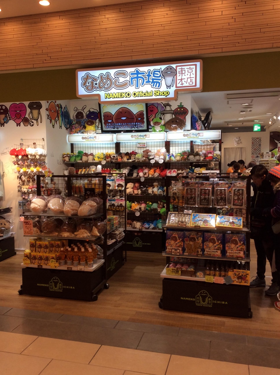 東京一番街の東京キャラクターストリートの中にあります。これまではイベントで限定出店されていたのが常設店として昨年の7月にオープンしました。アプリ「おさわり探偵 なめこ栽培キット」から紅白出場も果たした、超人気キャラクターのグッズがいっぱいです。