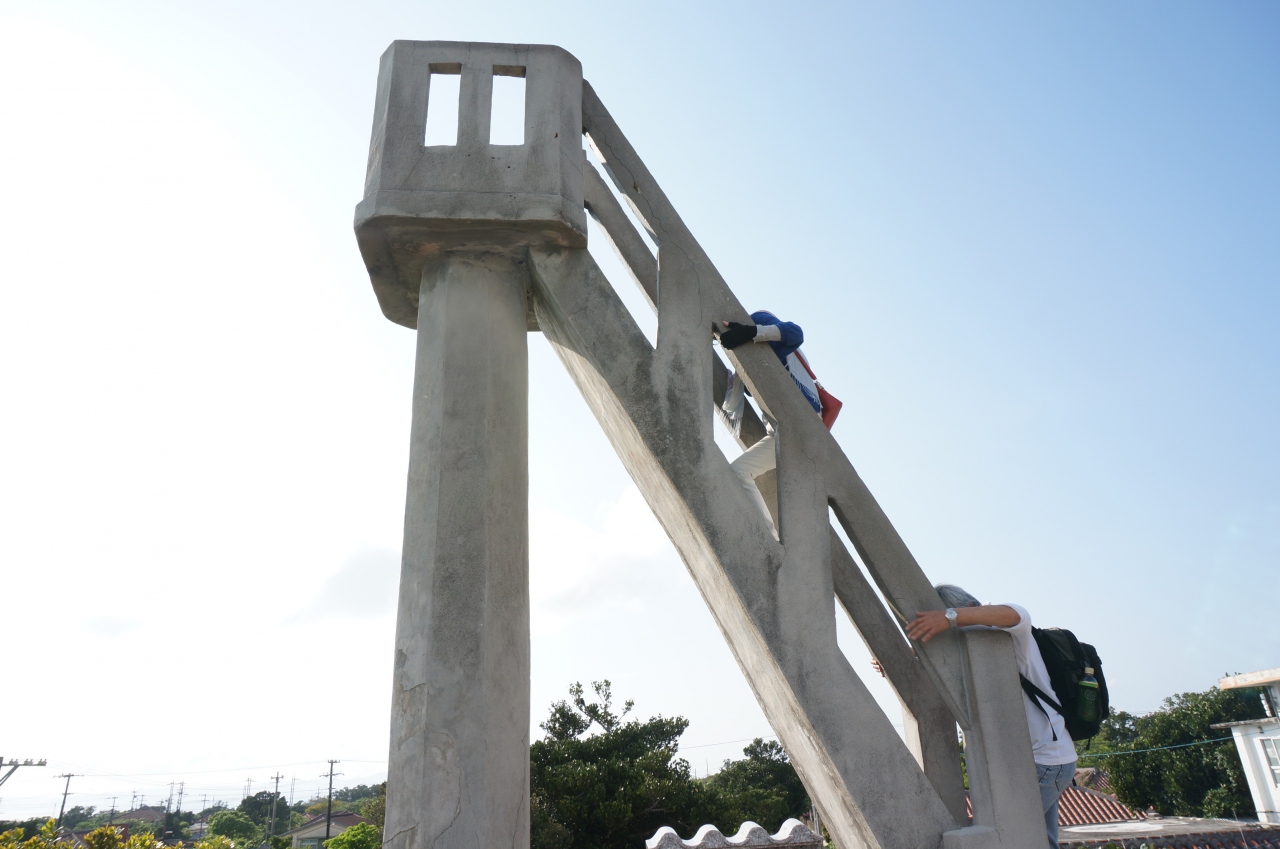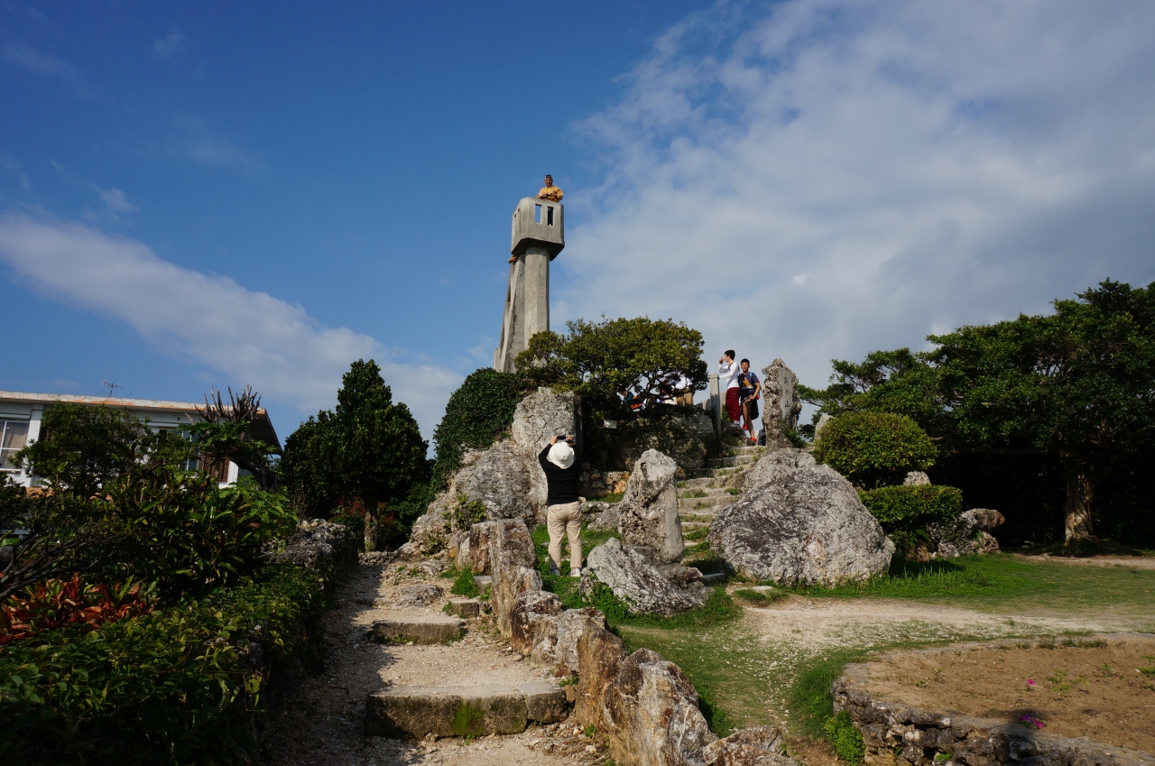 島の中心部の一応小高いところに作られたコンクリート製の狭くて急な階段の上にある展望台です。