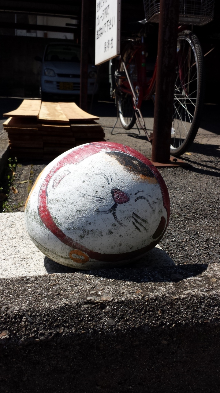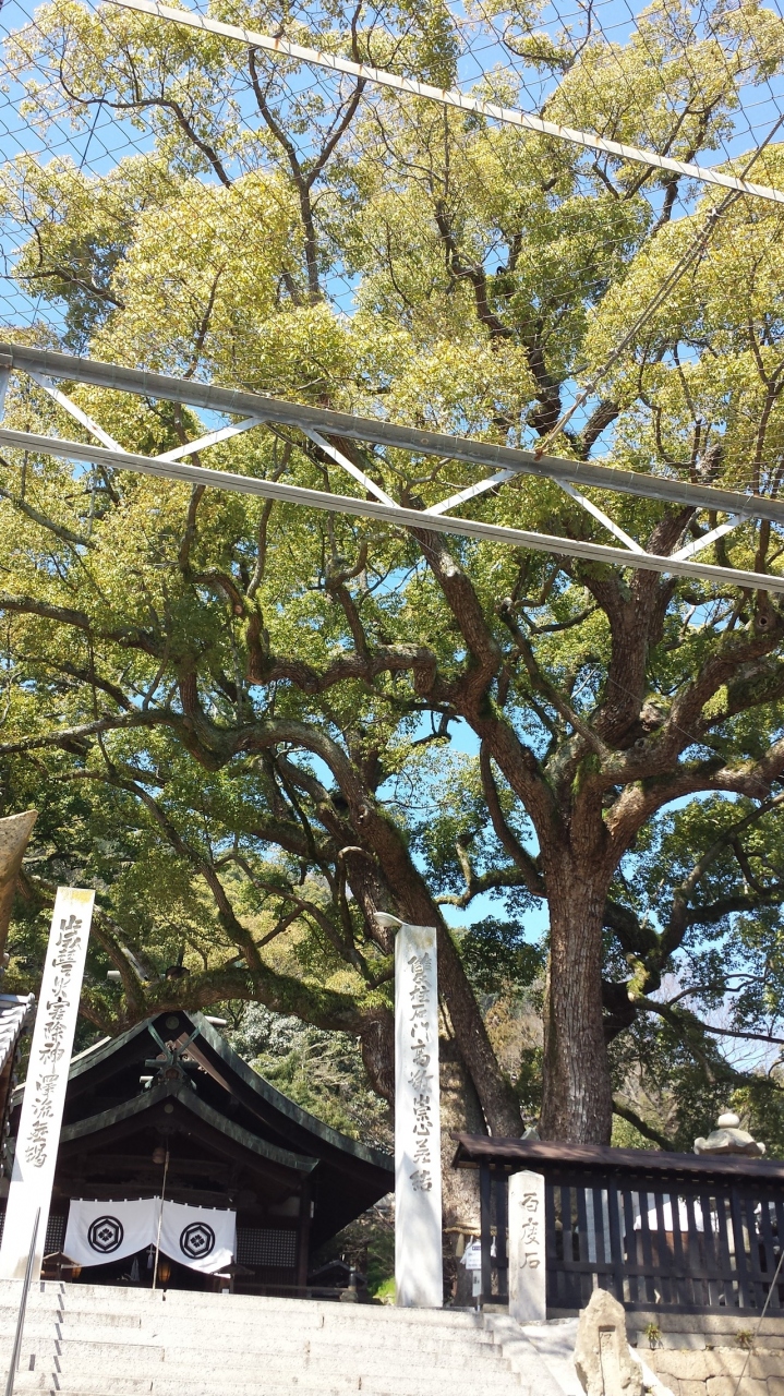 艮神社までは通る道にもよりますが、JR尾道駅から、15分はかかると思います。この神社は映画「時をかける少女」の舞台となっていて、近くの路地や階段など懐かしいシーンがよみがえる方も多いかもしれません。境内に続く駐車場には、福石猫が置いてありました。樹齢約900年の楠の迫力と境内に入ると一瞬にして空気が変わり気持ちが引き締まりました。