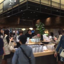 野菜だしで有名なだしの店。九州から発展した店だそうです。とにかく人気でいつでもすごい人が多くいます。そして試食も豊富です。出汁のほか、ドレッシングやソース、塩など商品数も多彩です。これは人に贈るのにぴったりです。